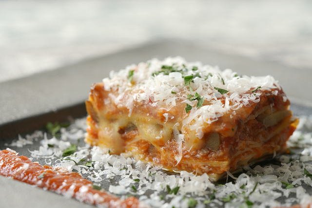 特に、岩手産小麦粉を使ったラザニアは、岩手県産のナスやトマトをアクセントにしたシェフ自慢の一品。四季折々の岩手の恵みを生かしたコースをお楽しみください。