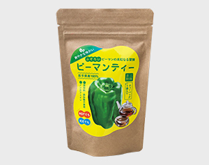 岩手県産の不揃いのピーマンのみを使用した保存料、添加物不使用のティーパックになっているお茶です。ホットでも水出しでもお楽しみいただける、さっぱりとした和紅茶のような甘味のあるお茶は、ピーマンの新たな価値を生み出すために誕生しました。製造にあたり、地元の高齢者の雇用促進、農家の努力を無駄にしないことで地域に貢献しています。