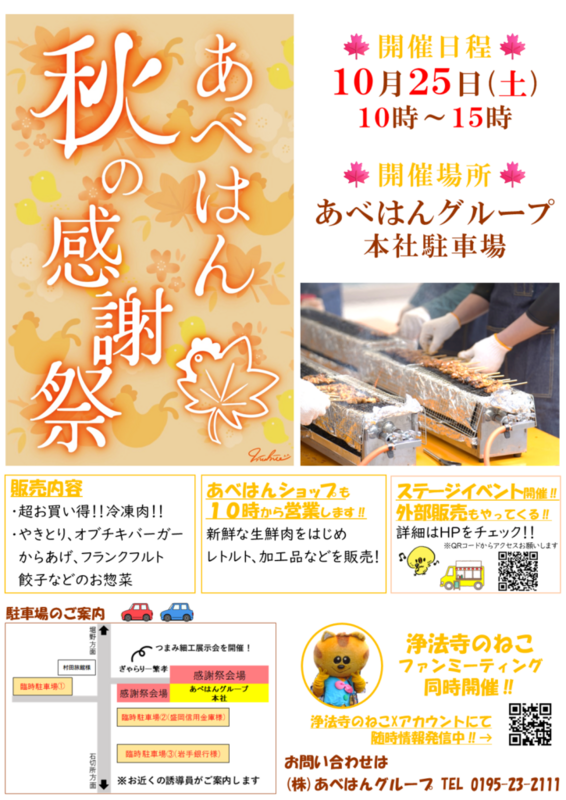あべどりでお馴染み「あべはん」の秋の感謝祭が開催されます! 超お買い得の冷凍肉や、レトルト、加工品、お惣菜のほか、ステージイベントや近... 続きを読む