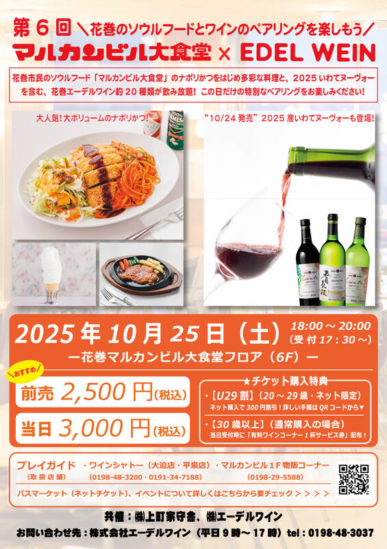 花巻市の「エーデルワイン」と「マルカンビル大食堂」がタッグを組んだ人気イベントが今年も開催されます! 新酒「いわてヌーヴォー2025」... 続きを読む