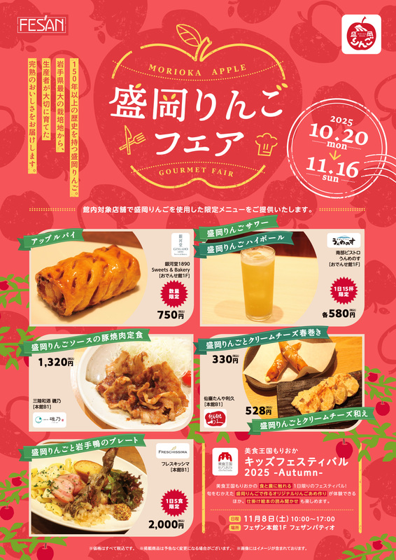 150年以上の歴史を持つ盛岡りんご。岩手県最大の栽培地から、生産者が大切に育てた完熟のおいしさをお届けします! フェア期間中は、対象店... 続きを読む