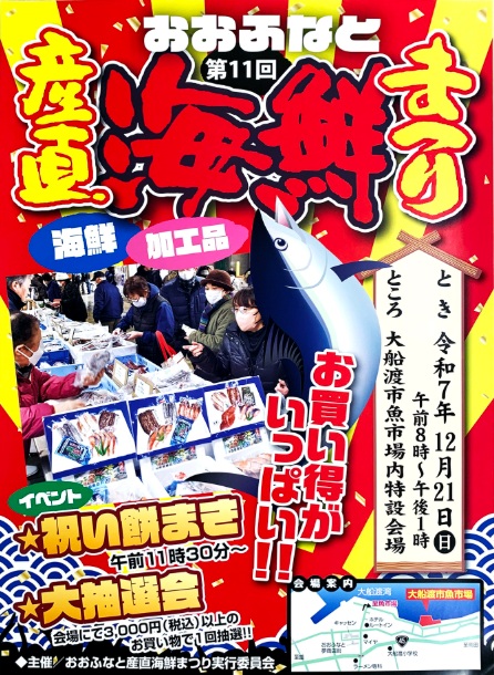 師走恒例!大好評の「おおふなと産直海鮮まつり」が開催されます! 地元業者が取り扱う海産物や水産加工品など、お買い得商品が並ぶ会場は賑わ... 続きを読む