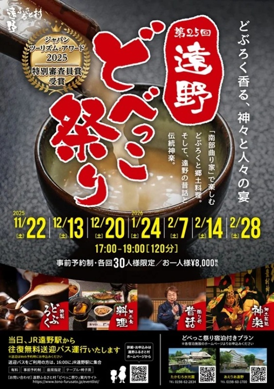 冬の風物詩、「遠野どべっこ祭り」が今年も開催されます! 「どべっこ」とは、遠野の造り酒屋が祭りのために特別に仕込んだ、昔懐かしい濁り酒... 続きを読む