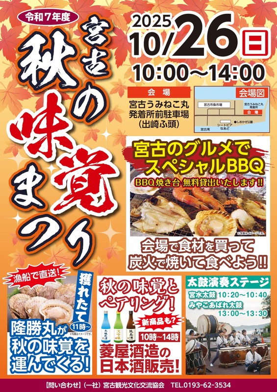 宮古のおいしい食材を買って、その場で炭火のバーベキューを楽しめる「宮古秋の味覚まつり」が開催されます! 秋の宮古のおいしいグルメを、海... 続きを読む