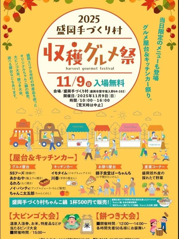 地域の秋の恵みをまるごと楽しむ収穫グルメ祭が開催されます! イベント最大の目玉は、盛岡広域8市町の旬の食材をふんだんに使用した「盛岡手... 続きを読む