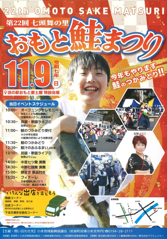 今年もやります鮭のつかみどり‼(※小中学生限定) 鮭汁のお振舞や特産物の出店、中里七ツ舞・中野七頭舞をはじめとするステージイベントなど... 続きを読む