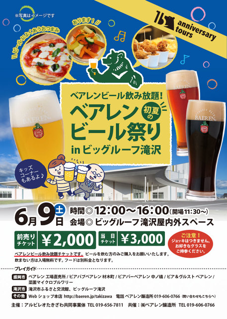 ベアレンビールが最大4時間飲み放題! たきざわキッチン他、ビールにあうお料理が多数とりそろえられます! キッズコーナーもあり、ご家... 続きを読む