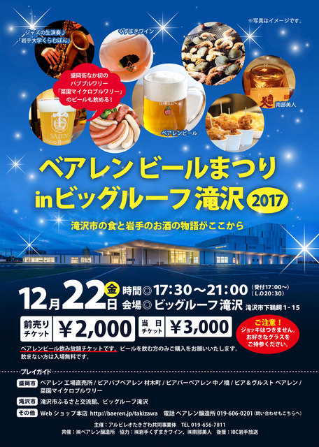 ベアレンビールに「菜園マイクロブルワリー」のビールが最大3時間半飲み放題! 会場では、別料金にて、くずまきワイン、南部美人のほか、ソー... 続きを読む