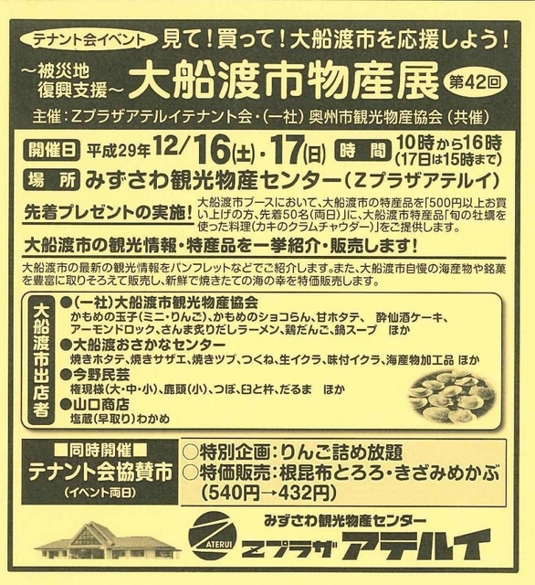 【奥州市】「大船渡市物産展」開催!(12月16日・17日)