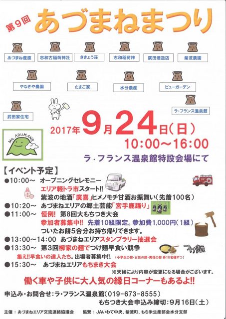 10月上旬から岩手県内で販売再開予定の岩泉ヨーグルトが、1kgサイズのみ、まつり当日限定で特別販売されます! 町内の特産品や郷土料理の... 続きを読む
