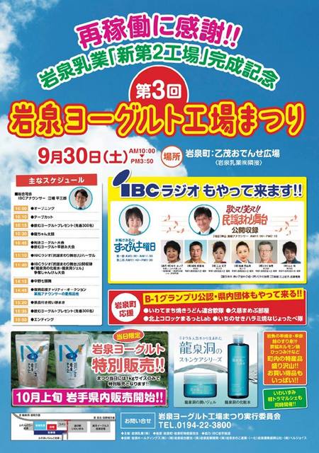 【岩泉町】「岩泉ヨーグルト工場まつり」開催!(9月30日)