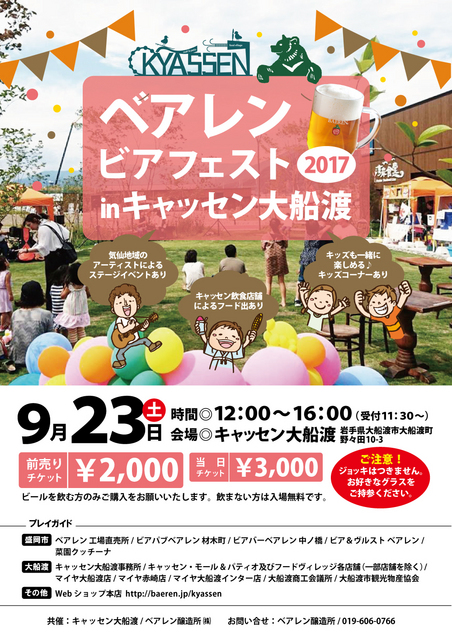 ベアレンビールが最大4時間飲み放題! キャッセン飲食店舗によるフードコーナーあり、キッズも一緒に楽しめるキッズコーナーありと、ビールを... 続きを読む