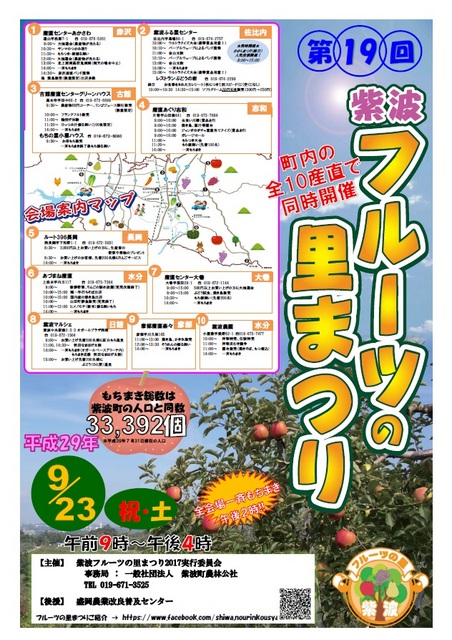 【紫波町】「第19回紫波フルーツの里まつり」開催!(9月23日)