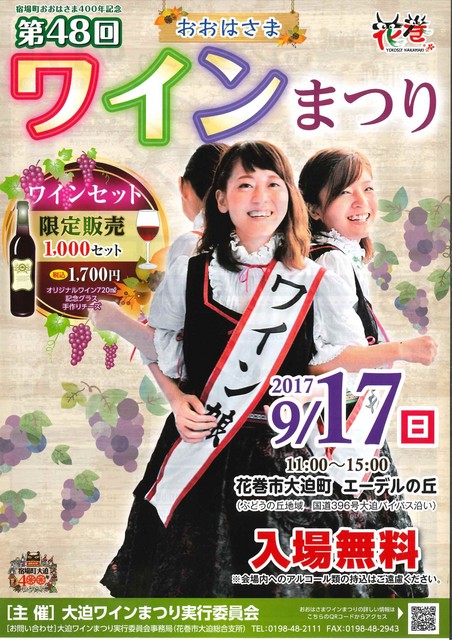 【花巻市】「おおはさまワインまつり」開催!(9月17日)