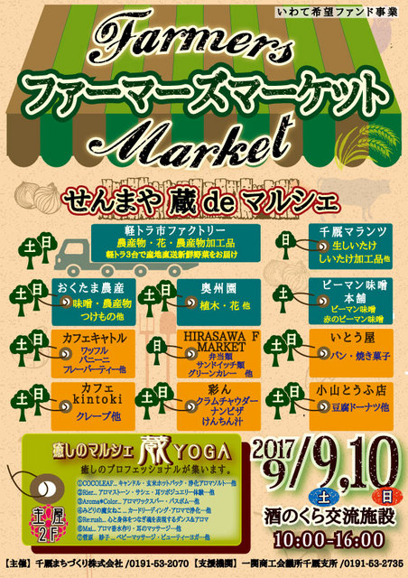 千厩の農産物や、飲食店のフード・ドリンク等をお楽しみいただけます。 同会場主屋2階では「癒しのマルシェ」も同時開催! 開催日 平... 続きを読む