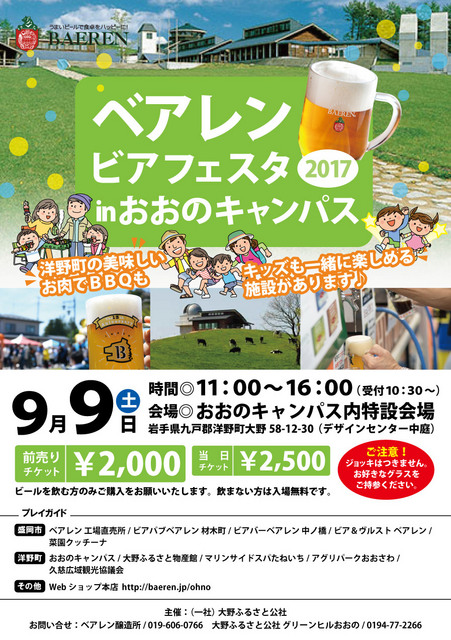【洋野町】「ベアレンビアフェスタ2017inおおのキャンパス」開催!(9月9日)
