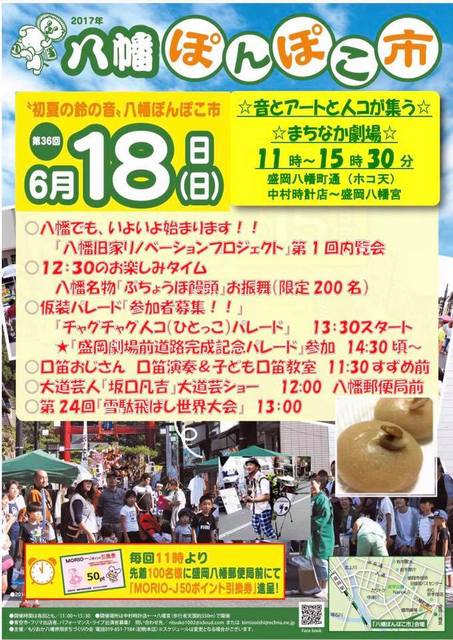 第36回「八幡ぽんぽこ市」は6月18日に開催されます! 八幡名物「ぶちょうほ饅頭」お振舞いのほか、「雪駄飛ばし世界大会」や「大青空市」... 続きを読む