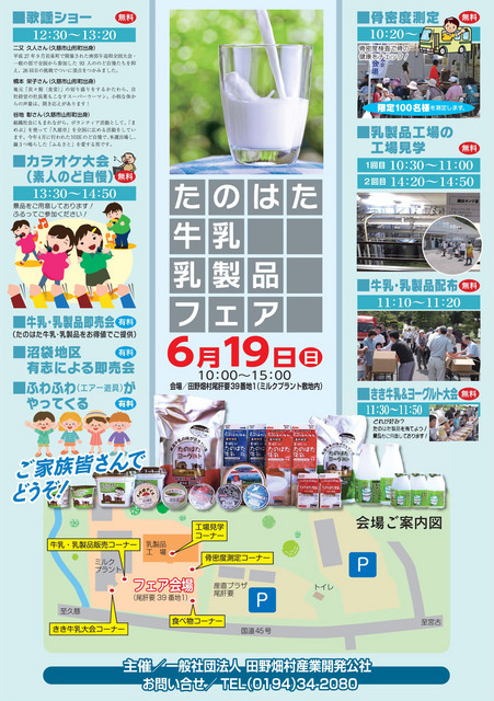 たのはた牛乳・乳製品の即売会・試飲会や無料配布のほか、きき牛乳&ヨーグルト大会(景品あり)など、田野畑村が誇る自然の恵み『たのはた牛乳』の... 続きを読む