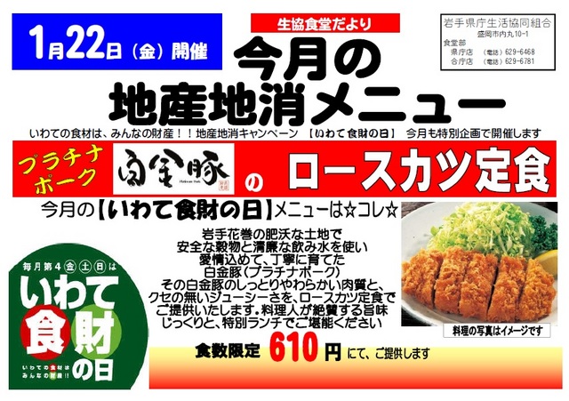 こんにちは♪ 毎月第4 金・土・日曜日の『いわて食財の日』に合わせ、県庁生協食堂において地産地消の特別メニューを提供しています。 ... 続きを読む