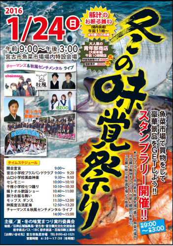 今年も「冬の味覚まつり」が開催されます! 豚汁のお振る舞いや、特製海鮮焼きそば、海鮮焼きなど、おいしい食べ物が揃うほか、ステージイベントも... 続きを読む
