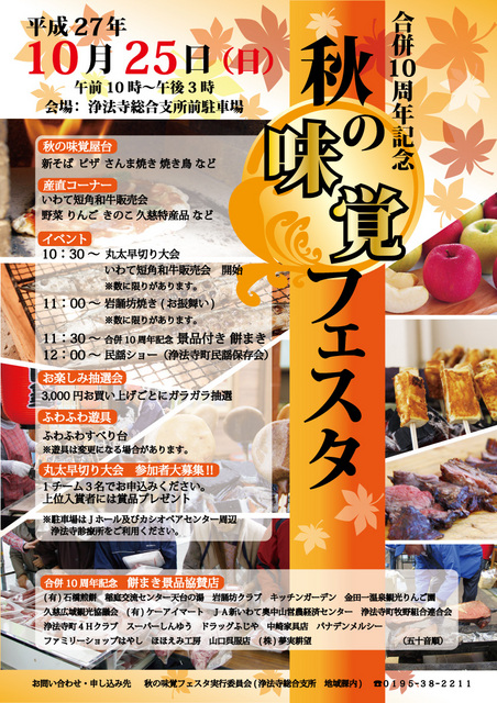 二戸市浄法寺町で「合併10周年記念 秋の味覚フェスタ」が開催されます。 新そばやさんま焼などの屋台や、いわて短角和牛の販売会や、野菜、りん... 続きを読む