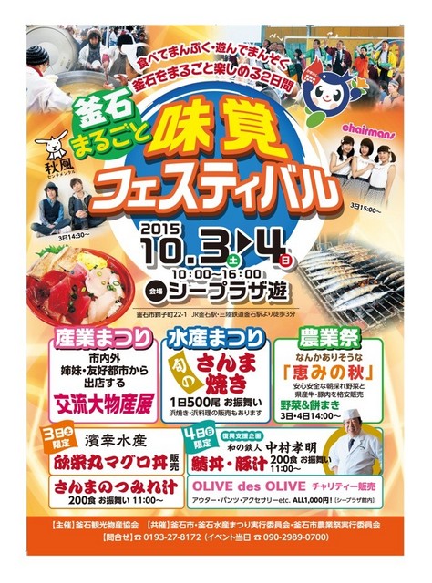 釜石市内の海の幸、山の幸はもちろん、姉妹都市等のおいしいものが大集合します! 産業まつり、農業祭、水産まつりなど釜石の味覚イベントを1か所... 続きを読む
