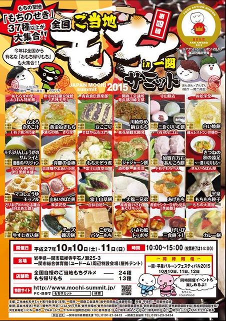 餅の聖地“いちのせき”で「全国ご当地もちサミット2015 in 一関」が開催されます! 全国各地のご当地もち料理を集め、来場者の投票でグラ... 続きを読む
