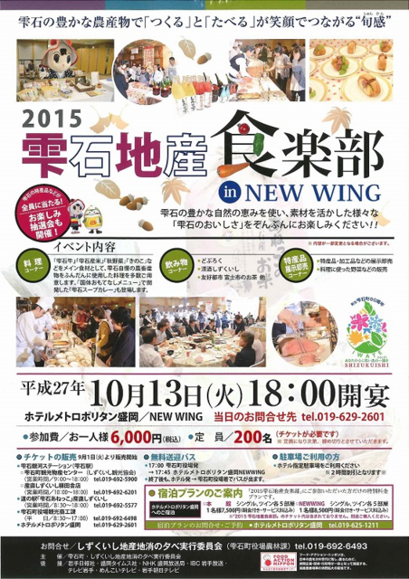 【雫石町】「雫石地産食楽部」のご案内(10/13)