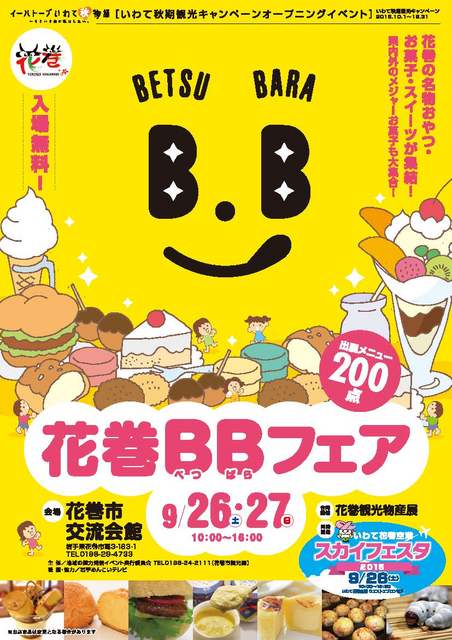 花巻B×B×(べつばら)フェアのご案内です! ◆開催日:平成27年9月26日(土)、9月27日(日) ◆時間:10:00~16:00... 続きを読む
