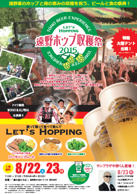 遠野産のホップと畑の恵の収穫を祝う、ビールと食の祭典、「遠野ホップ収穫祭2015」が開催されます! 特設の大型テントの下で、美味しいビール... 続きを読む