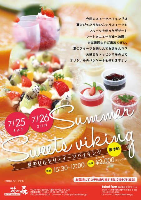 八幡平市のサラダファーム‘花の森レストラン’で「夏のひんやりスイーツバイキング」が開催されます。 暑い夏にぴったりのひんやりスイーツや、フ... 続きを読む
