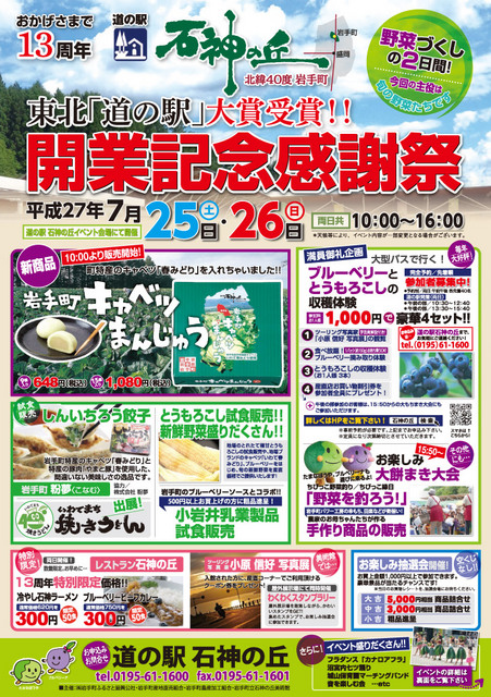 岩手町の道の駅「石神の丘」では、開業13周年記念感謝祭が開催されます! ‘大餅まき大会’や‘野菜の収穫体験’などのイベントや、特産のキャベ... 続きを読む
