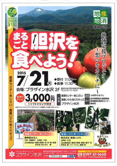 奥州市のホテル「プラザイン水沢」と奥州市胆沢区の産直「産直センターあじさい」と「産直いさわあぐりキッズ」がコラボし、胆沢産の食材を使用した... 続きを読む