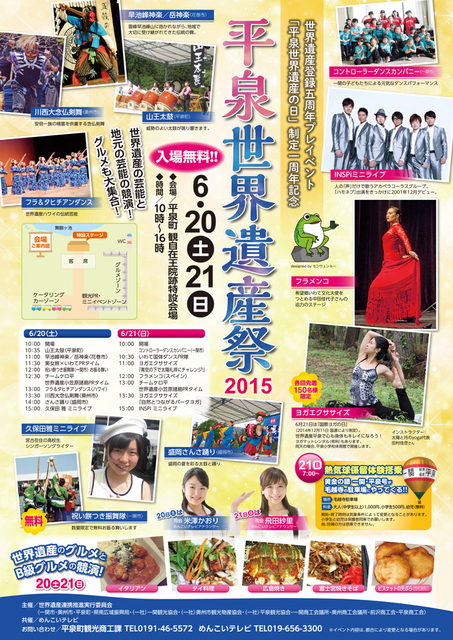 「平泉世界遺産の日制定1周年記念」世界遺産登録5周年プレイベントとして「平泉世界遺産祭2015」が開催されます。 ‘世界遺産の芸能’と... 続きを読む