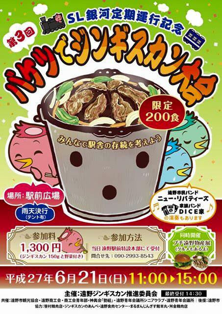 遠野スタイルの‘バケツジンギスカン’を楽しめるイベントが遠野駅前で開催されます! 限定200食となっております!お早めにどうぞ! ☆... 続きを読む