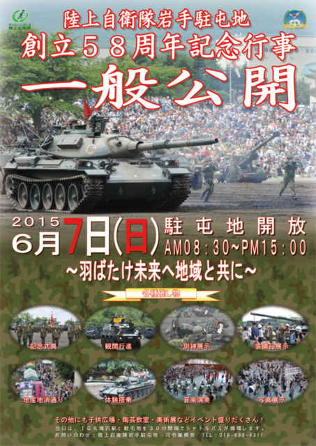 岩手駐屯地創立58周年記念行事として開催される一般公開イベント。 普段目にする事ができない訓練展示や体験搭乗等のほか、‘地産地消屋台コーナ... 続きを読む