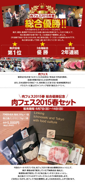 「格之進」さんが“日本最大級の肉の祭典「肉フェス2015春」”にて、2年連続総合1位を獲得しました! 総合優勝を記念して「肉フェス20... 続きを読む