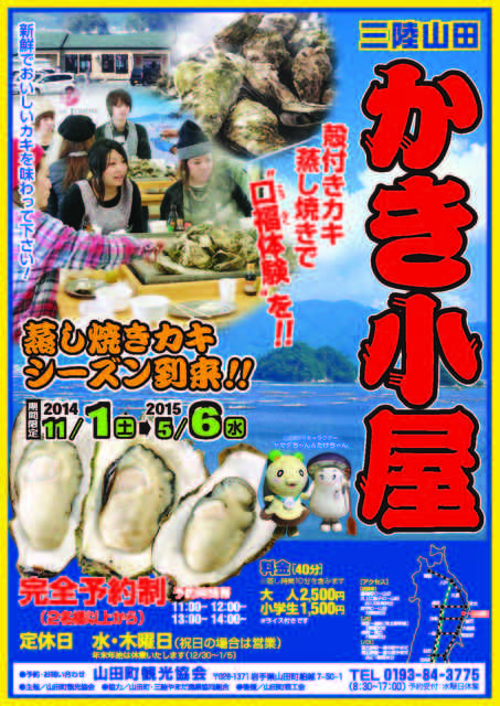 今年もやってきました、三陸山田かき小屋名物「蒸し焼きカキ」のシーズン到来!! 新鮮で美味しいカキをご賞味ください♪ ※完全予約制(2名様... 続きを読む