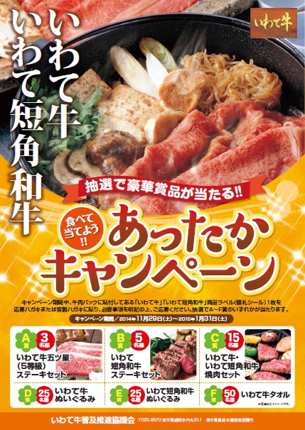 いわて牛・いわて短角和牛を食べて当てようあったかキャンペーン開催中!