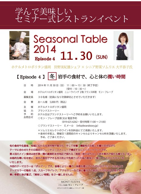 知って美味しいセミナー式レストランイベント、Seasonal Table(旬の食卓)。 早いものでこの取り組みも4回目を迎えます。 ... 続きを読む