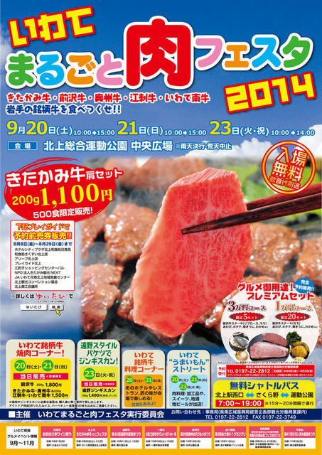 いわての銘柄牛が食べれる『いわてまるごと肉フェスタ2014』開催のご案内です! きたかみ牛・前沢牛・奥州牛・江刺牛・いわて南牛が勢ぞろ... 続きを読む