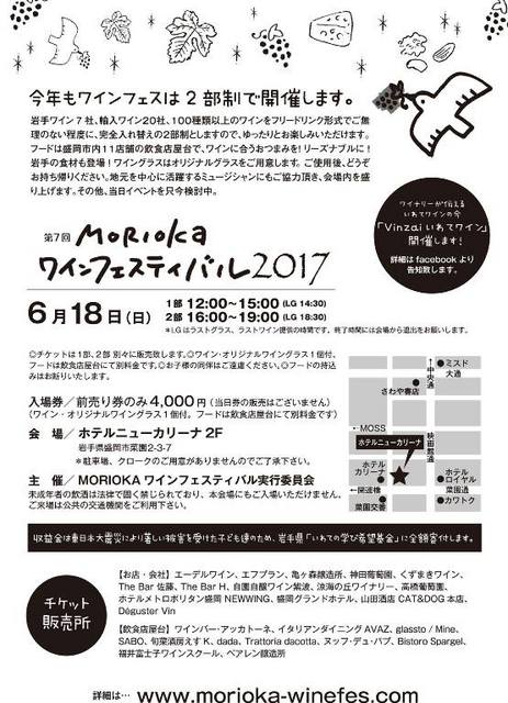 東日本大震災チャリティーイベント「第7回MORIOKAワインフェスティバル2017」が開催されます!
