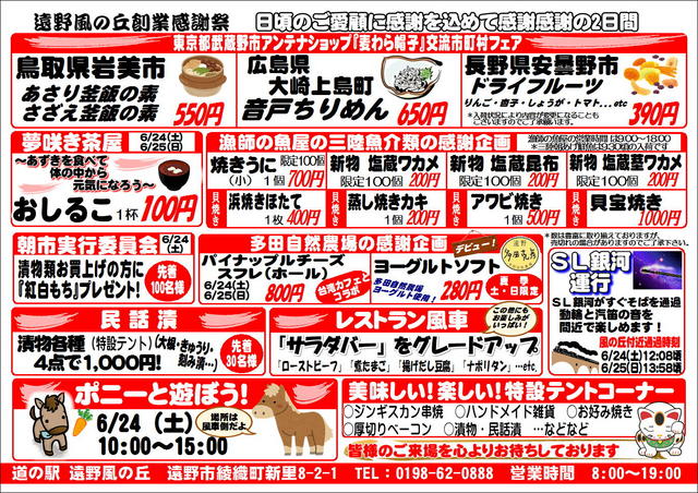 道の駅遠野風の丘19周年の創業感謝祭が開催されます!