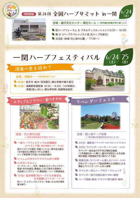 「第24回全国ハーブサミットin一関」の開催に合わせ、一関市内の3会場で「一関ハーブフェスティバル」が開催されます!