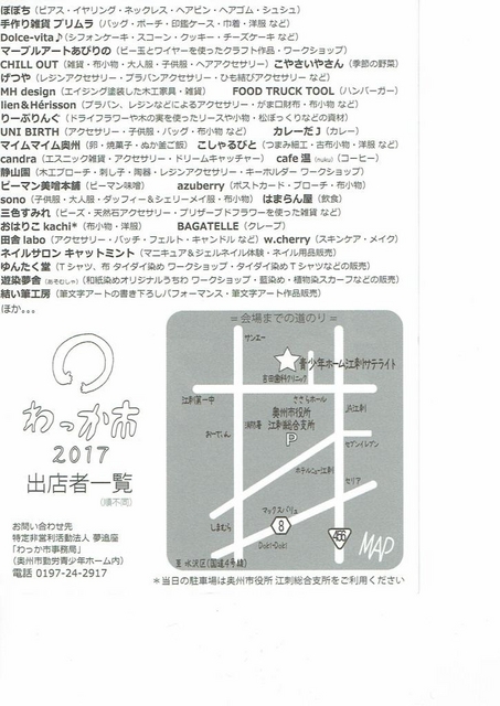 問い合わせ 特定非営利活動法人夢追座「わっか市事務局」(電話 0197-24-2917)