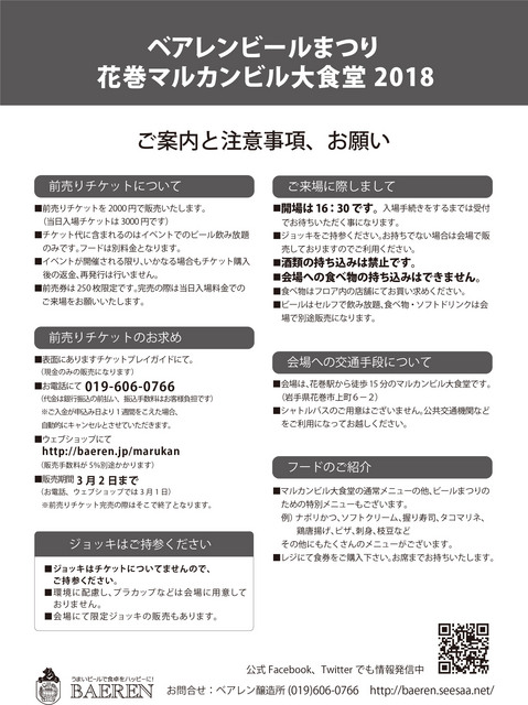 【花巻市】「ベアレンビールまつり 花巻マルカンビル大食堂2018」開催!(3月3日)