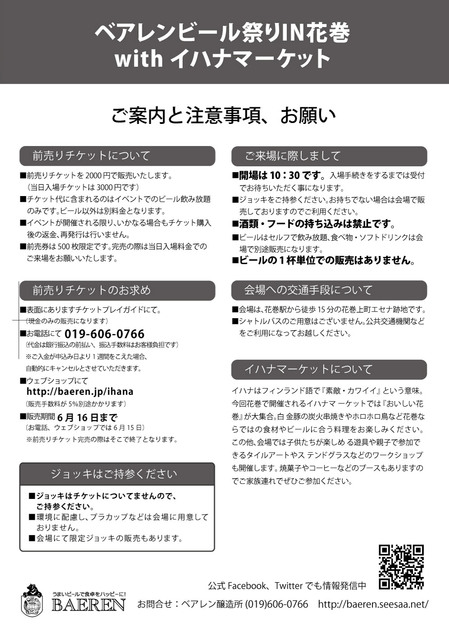 【花巻市】「ベアレンビール祭りwith Ihana market in花巻」開催!(6月17日)