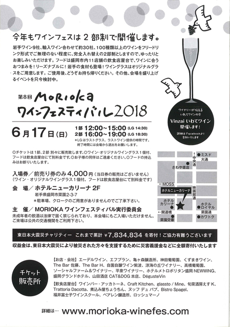 【盛岡市】「第8回2018MORIOKAワインフェスティバル」開催!(6月17日)