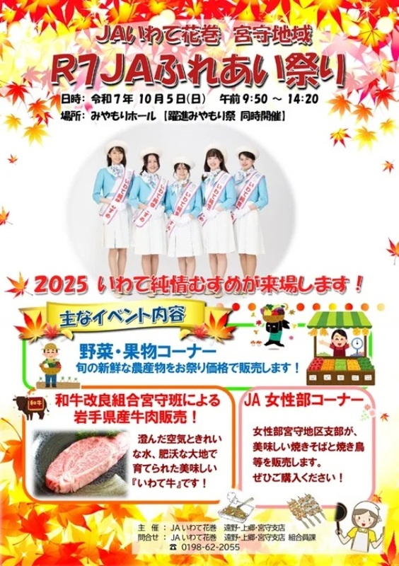同時開催の「JAふれあい祭り」では、新鮮な農産物の特価販売や、県産牛肉の販売など、こちらも見逃せません!