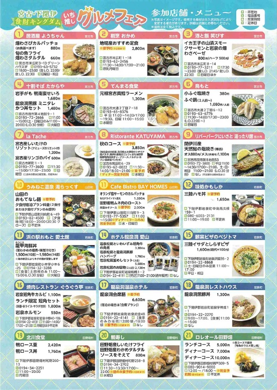 【宮古市・山田町・岩泉町・田野畑村】「宮古・下閉伊食財キングダムいち推しグルメフェア」開催!(10月1日から31日まで)